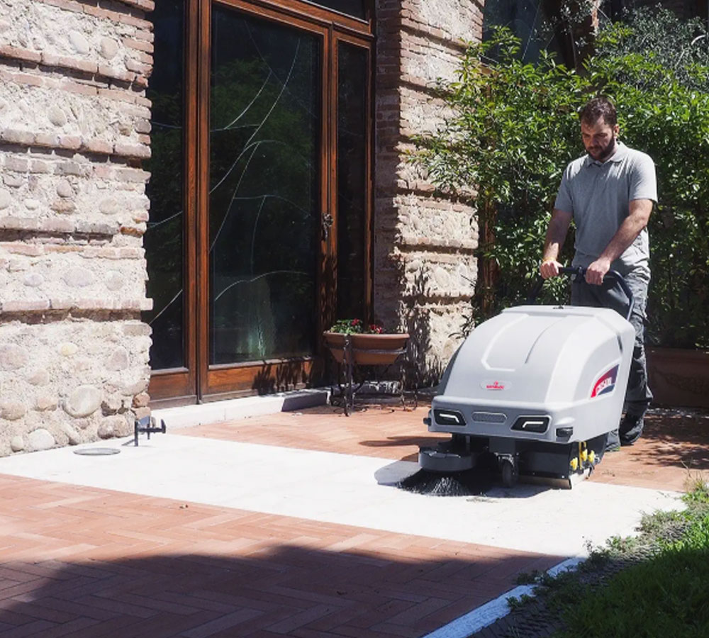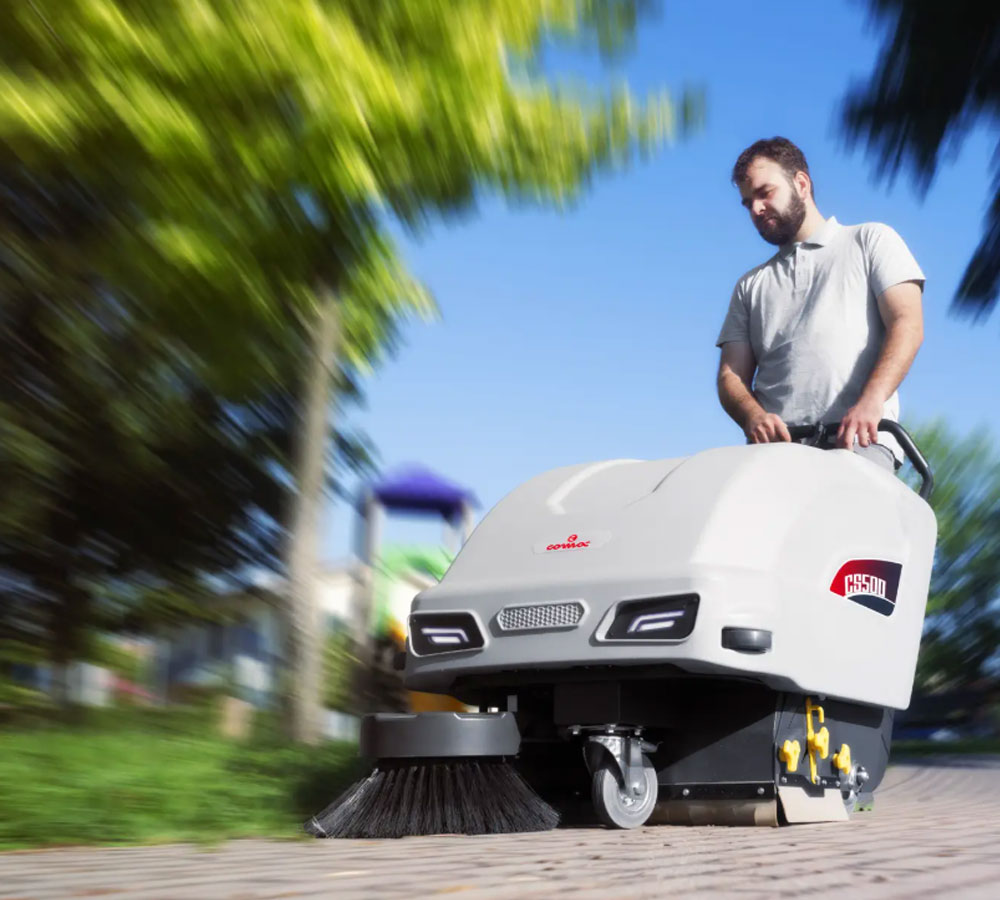 Suitable for cleaning both indoor and outdoor surfaces measuring up to 2600 sq.m, Comac CS500 is the perfect sweeping machine for sweeping garages, car parks, paths, walkways or pavements. However, this small sweeping machine is also ideal for cleaning warehouses, motorway service areas, car washes and spaces dedicated to the logistics, public, artisan production or automotive sectors.