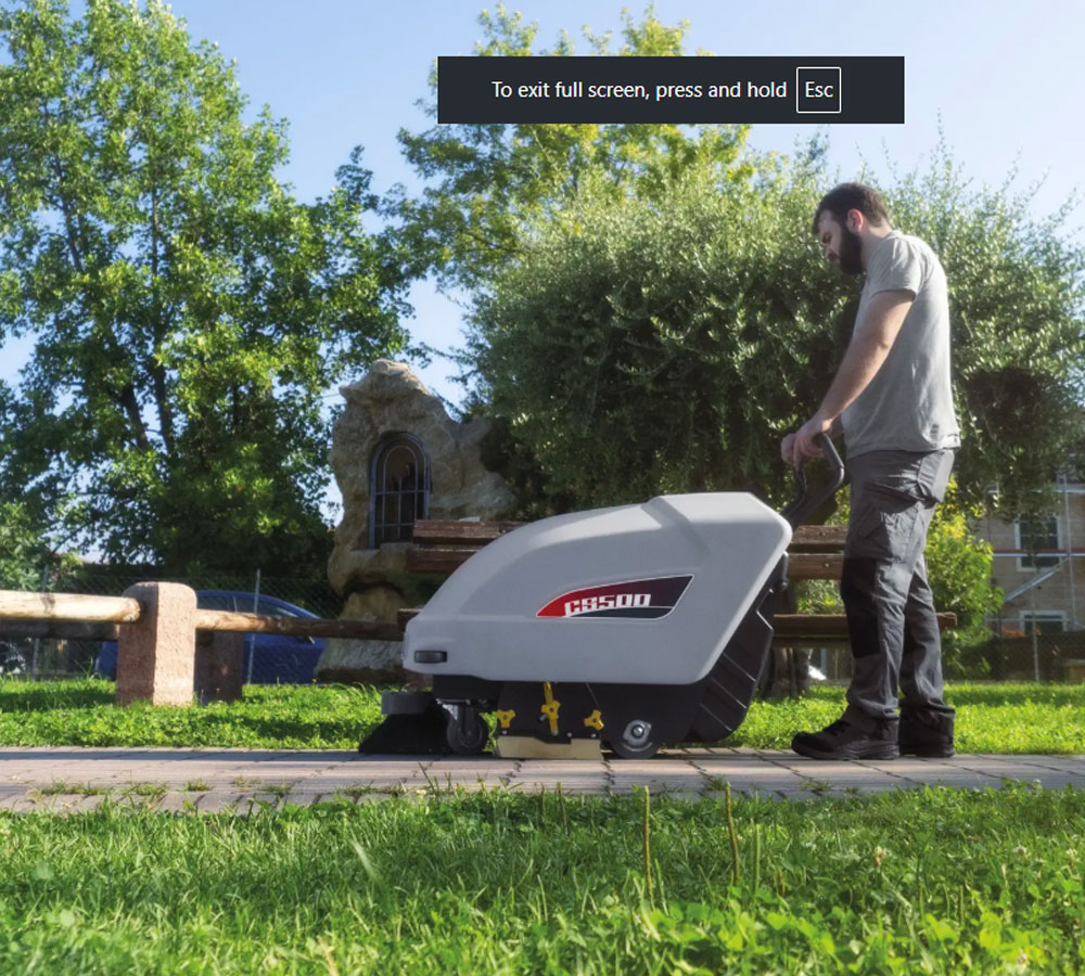CS500 B. a small battery-powered sweeper simplifies cleaning operations, courtesy of its excellent performance levels which enable the productivity of those who use it to be increased